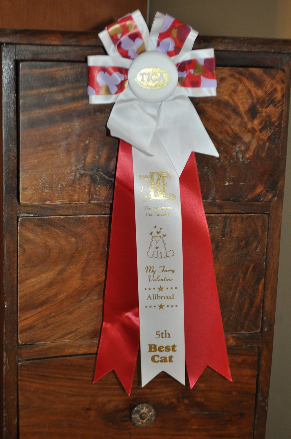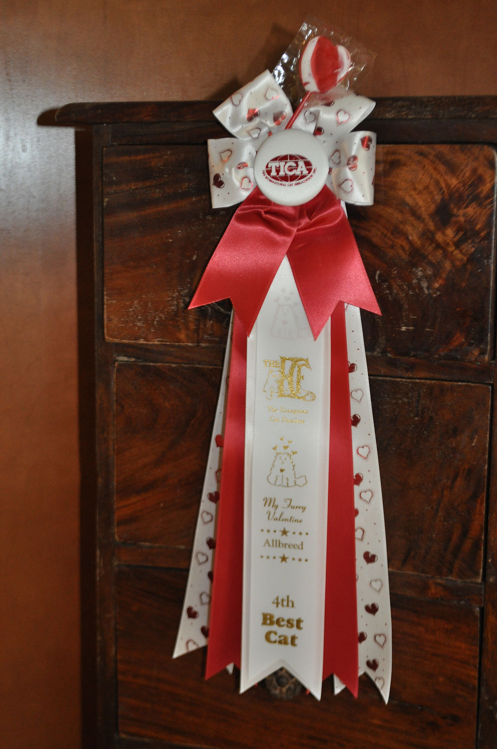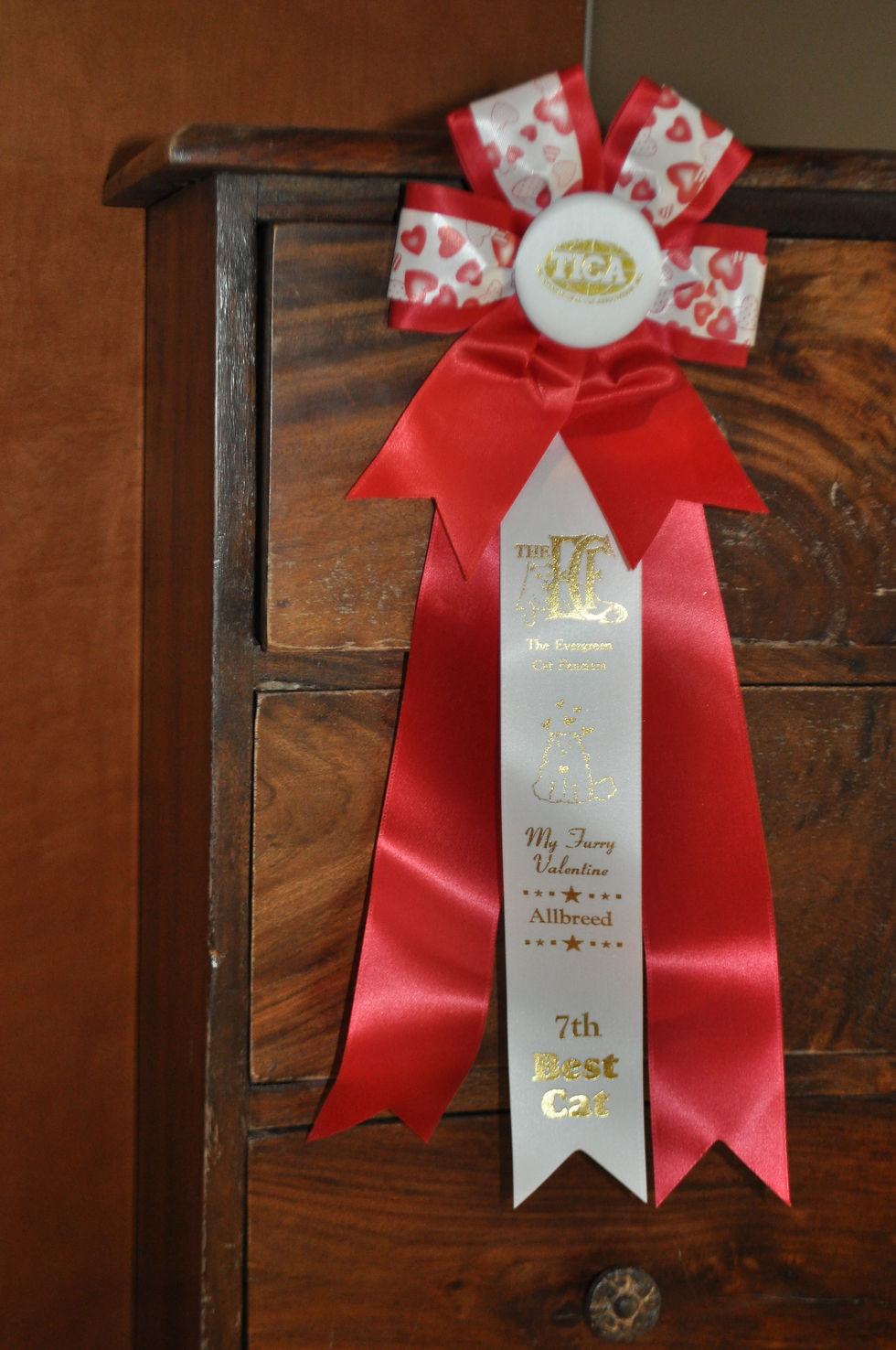 Cybele is creating some of the most incredible kittens here! She is incredibly strong (mistaken for a male if it weren't for the pink card above her enclosure in the judges ring), beautiful and vibrant - and she even has a rosette in the shape of a heart!