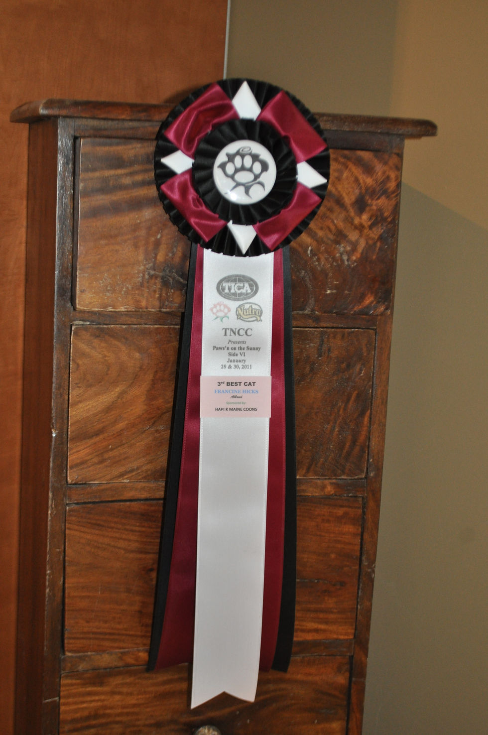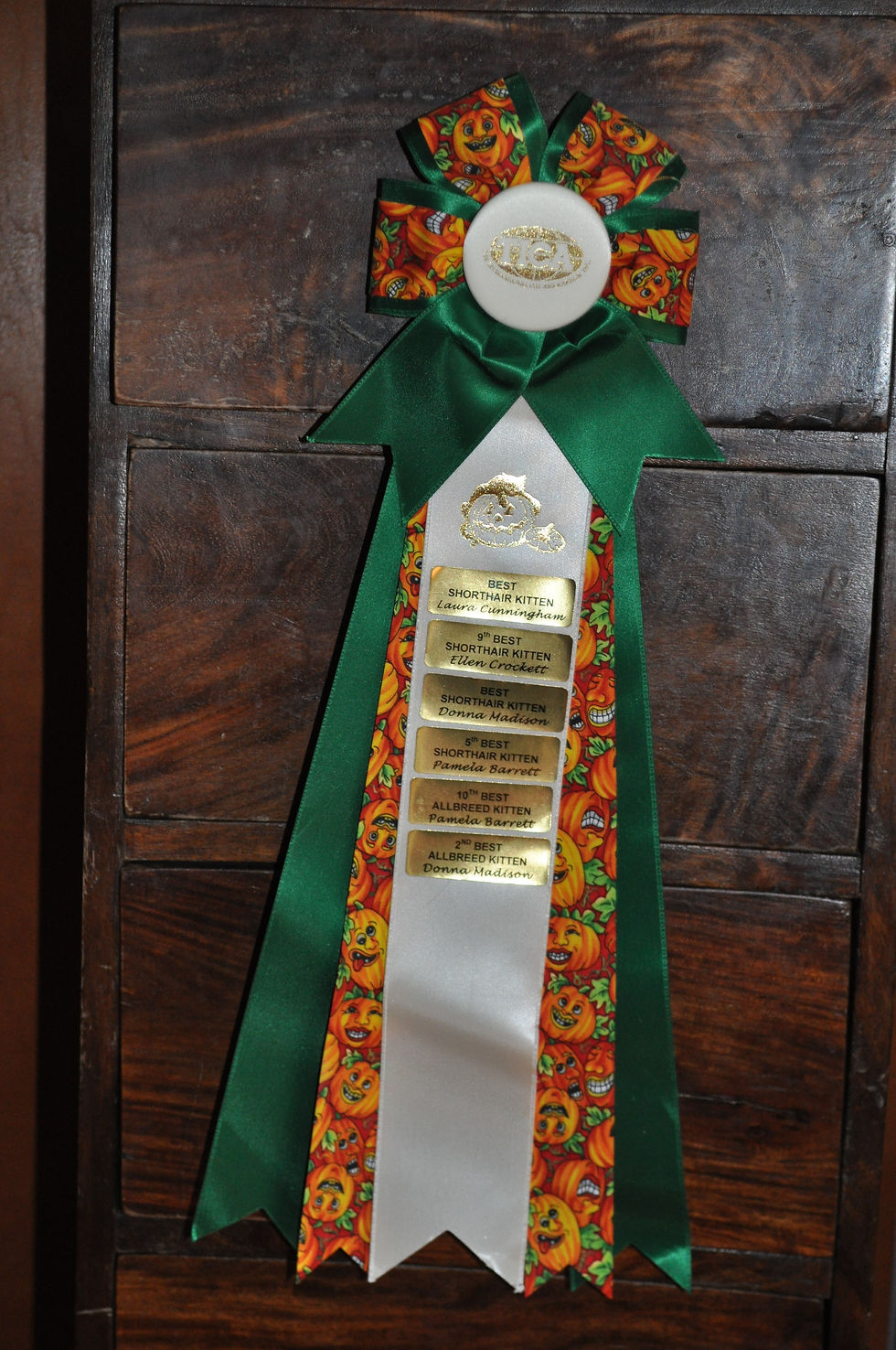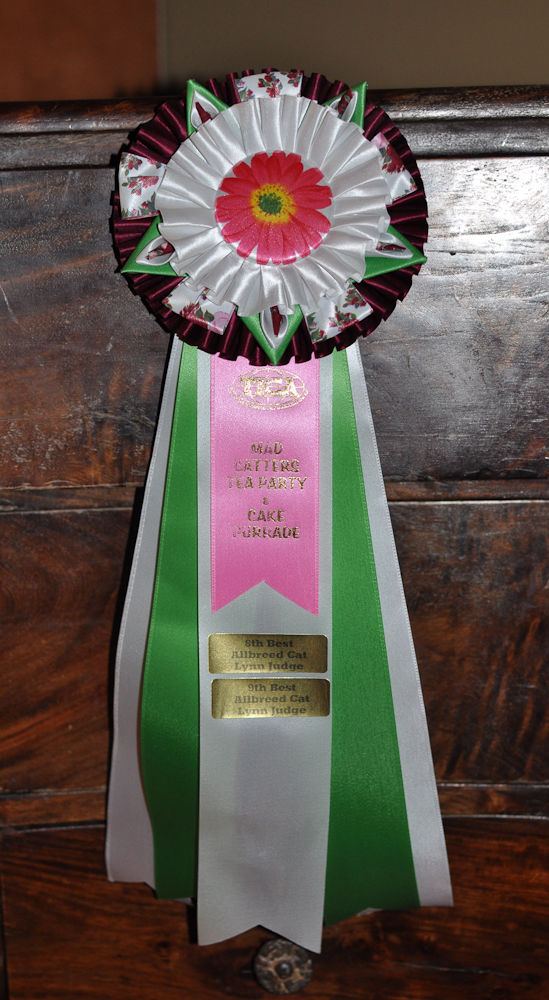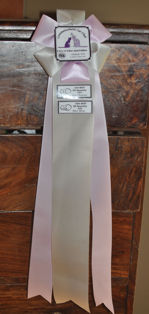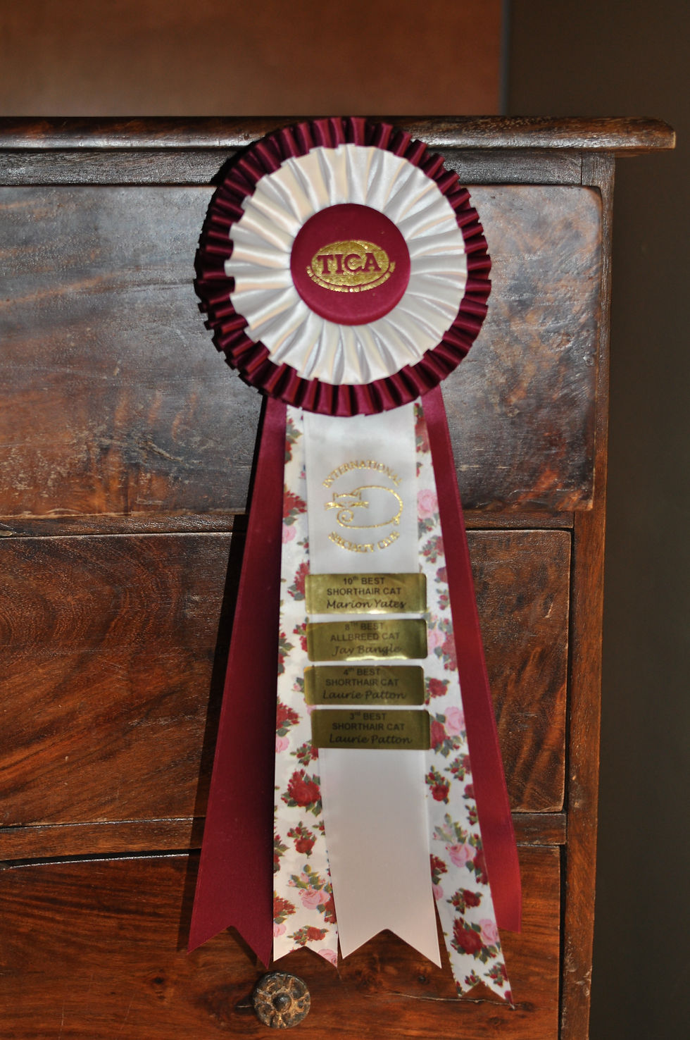 Cybele is creating some of the most incredible kittens here! She is incredibly strong (mistaken for a male if it weren't for the pink card above her enclosure in the judges ring), beautiful and vibrant - and she even has a rosette in the shape of a heart!