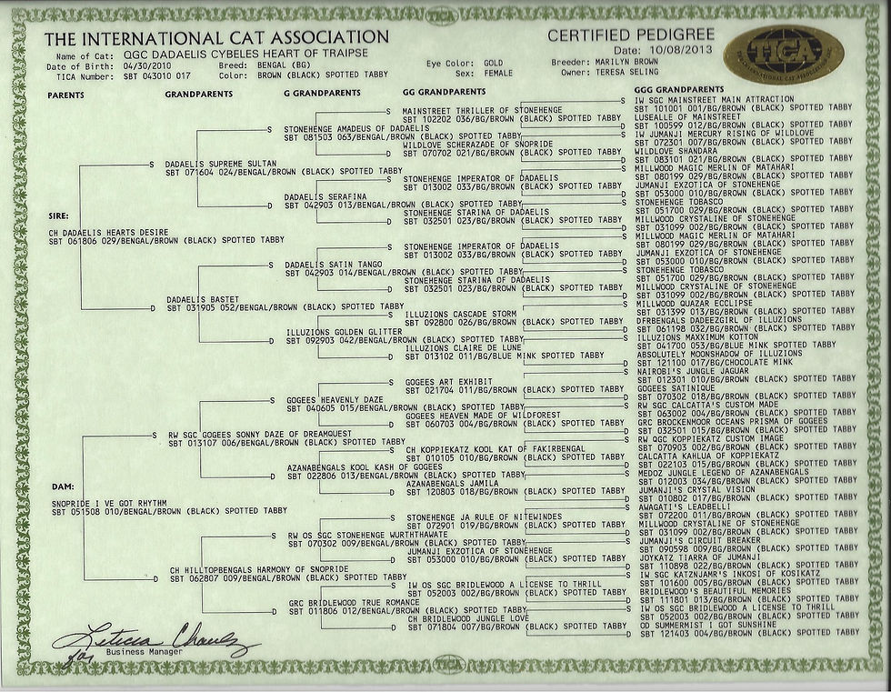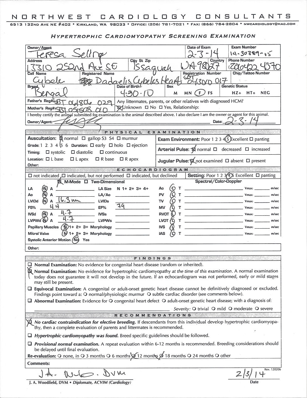 Pictures, Pedigree and HCM Scans for Cybele below: