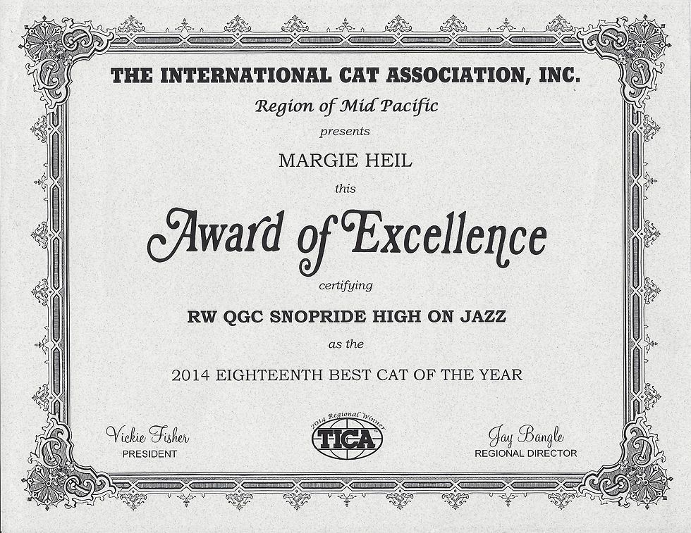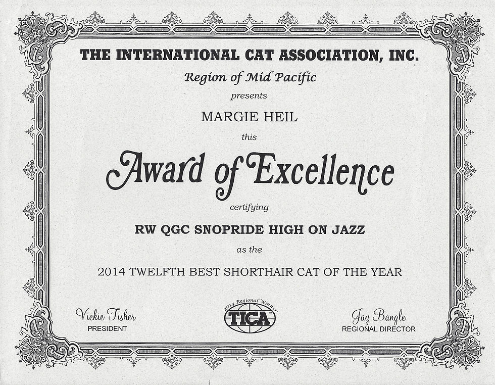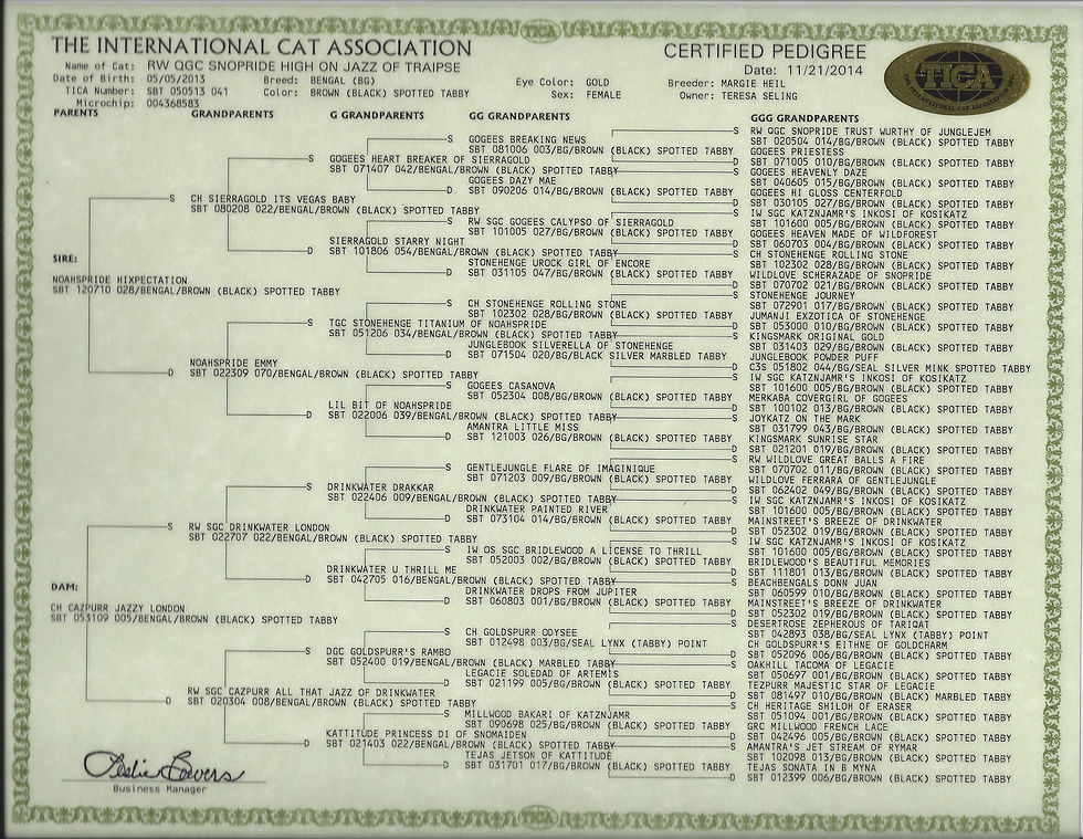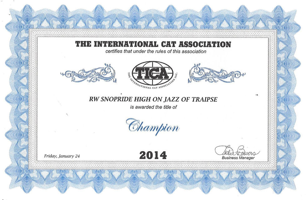 I showed Jazzy about a week after her arrival and she earned 1,245 points at the show - 8 Adult bengals were there including Morpheus and Crash. Jazzy was the Best Bengal at the show!! Still not a Supreme, but only needs her "Best Cat" now to receive this title.