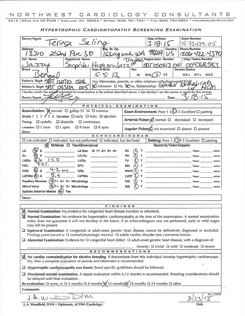 Pictures, Pedigree and HCM Scans for Jazzy below: